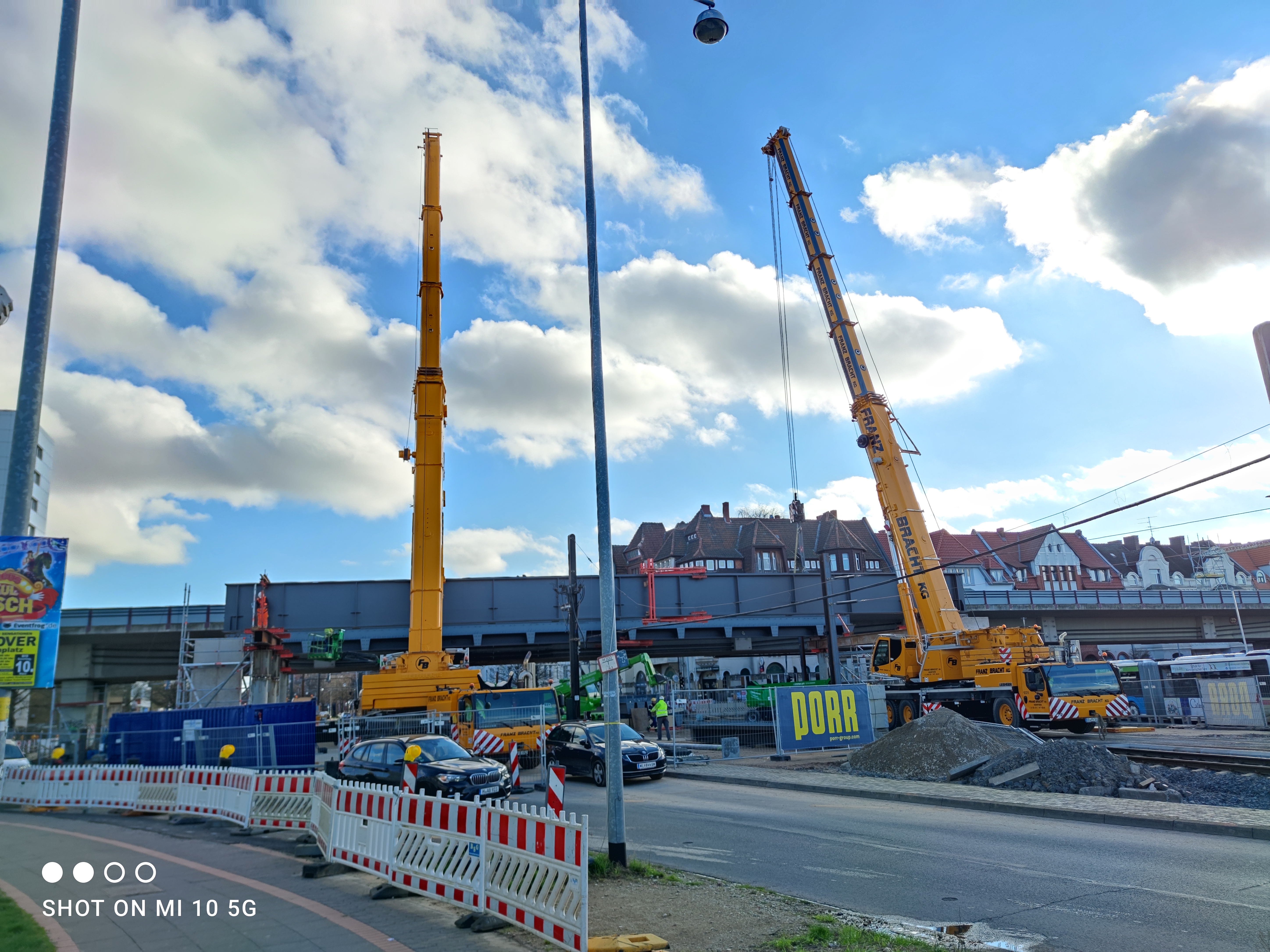 Auf Hannovers prominentester Großbaustelle wird aktuell die ca. 900 m lange Behelfsbrücke, welche als Umfahrung der späteren Tunnelbaugrube dient, gebaut.