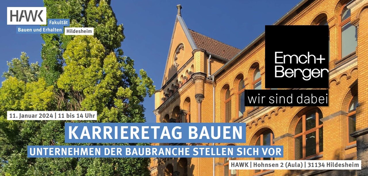 Wir freuen uns darauf, am 11.01.2024 am "Karrieretag Bauen" an der HAWK in Hildesheim teilnehmen zu können.