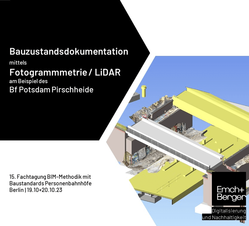 Mit einem Vortrag zum Thema 'Bauzustandsdokumentation mittels Fotogrammmetrie / LiDAR am Beispiel des Bf Potsdam Pirschheide' ist auch Emch+Berger Teil der Tagung.