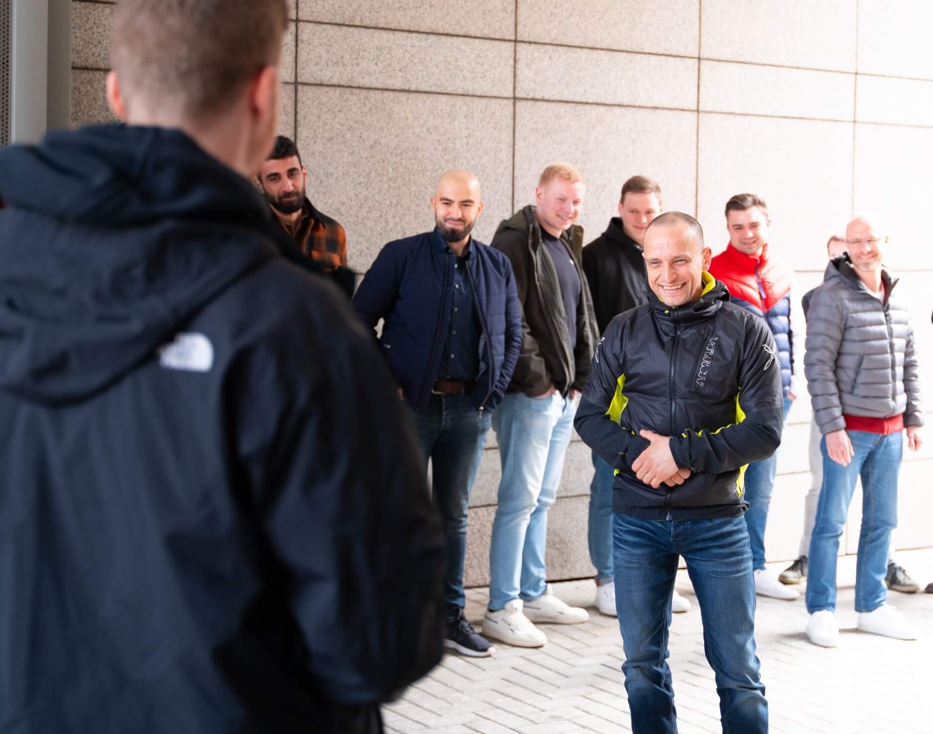 Die Überraschung stand ihm ins Gesicht geschrieben, als die ganze Firma Waldemar Krakowski mit einem lauten „Überraschung" im Innenhof begrüßte.